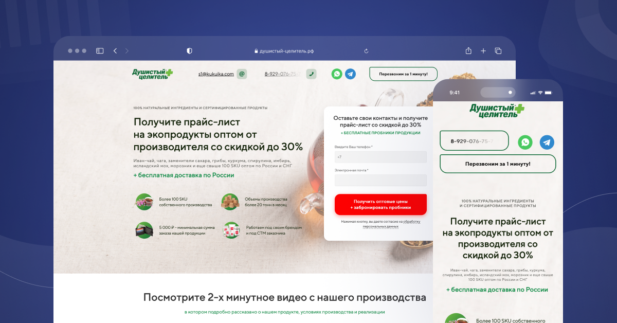 Душистый Целитель – компания, специализирующаяся на производстве и продаже БАДов и экопродуктов оптом. Основная аудитория – магазины здорового питания, аптеки, фермерские рынки и частные предприниматели.