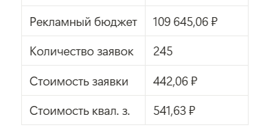 📌 245 заявок по 442,06₽ – эффективное снижение стоимости лида.
