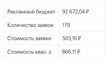 За месяц удалось привлечь 179 лидов со средней стоимостью 503,16 руб. Конверсия составила 4,17%. Благодаря оптимизации бюджета и корректировке стратегии удалось достичь стабильного потока заявок.