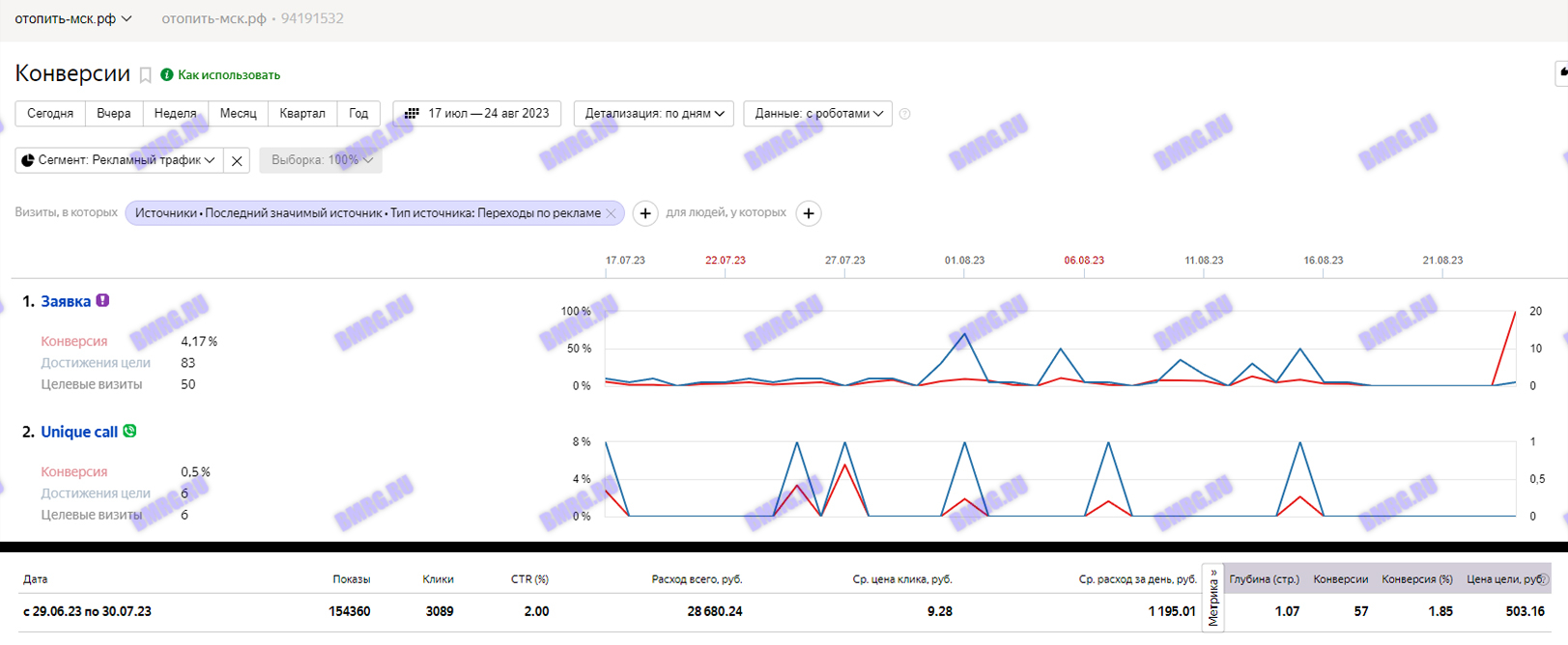 Поначалу цена лида была выше 2 500 руб., так как трафик оставался частично нерелевантным. После корректировки ключевых слов и переработки посадочной страницы стоимость заявки снизилась. Высокая конкуренция также была проблемой — многие компании сливают бюджет, борясь за топовые позиции. Решением стало тестирование разных временных окон показа рекламы и корректировка ставок.