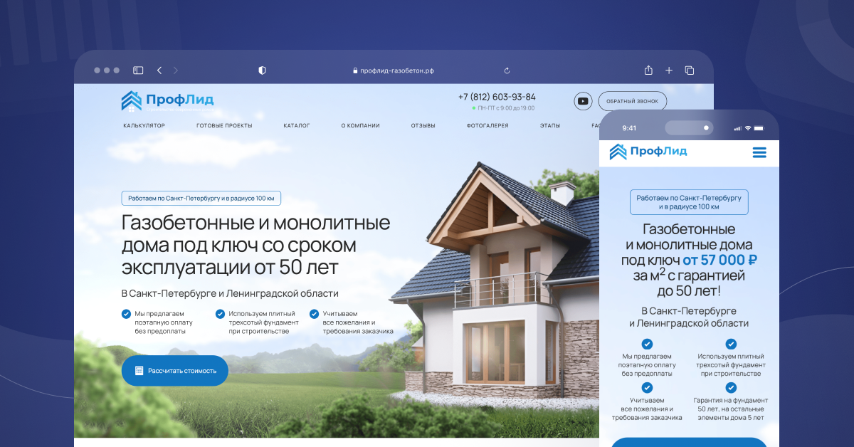Профлид – компания, занимающаяся строительством домов из газоблока и газобетона в Санкт-Петербурге и Ленинградской области. Целевая аудитория – владельцы участков, которые планируют построить частный дом.
