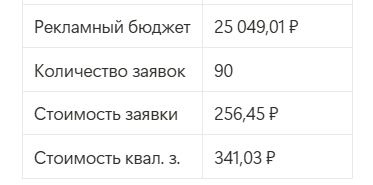 📌 90 заявок по 256,45₽ – ниже планового бюджета.