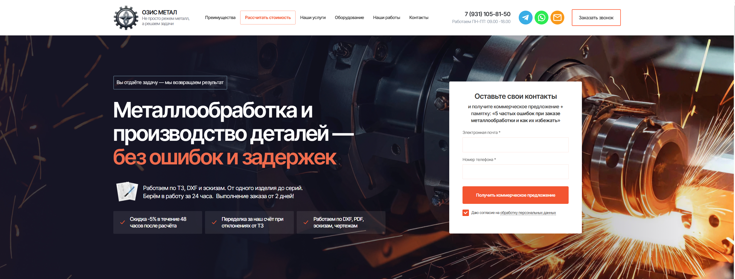 - Оффер с гарантией — “Металлообработка и производство деталей — без ошибок и задержек.”