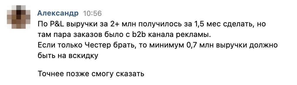 - Достигнуть оборота в 2 млн рублей за 1,5 месяца.
