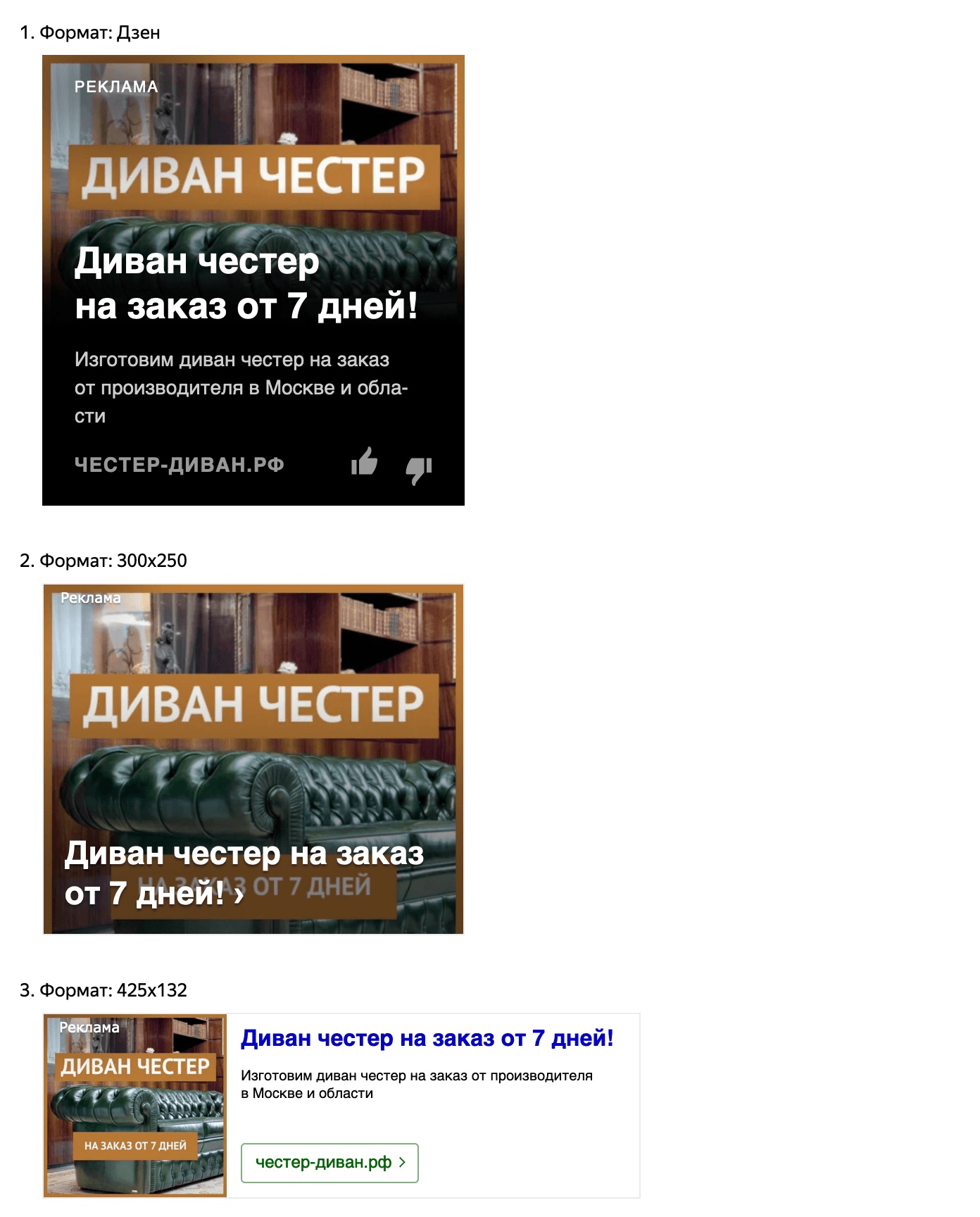 Наш клиент — компания, занимающаяся изготовлением и продажей диванов в стиле «Честер» на заказ. Нишу можно охарактеризовать как довольно конкурентную, поскольку рынок наполнен как крупными игроками, так и небольшими мастерами, предлагающими индивидуальный подход. Главной проблемой клиента было отсутствие стабильных онлайн-продаж, а также высокий уровень конкуренции с крупными производителями, которые могли предложить низкие цены за счет масштаба.