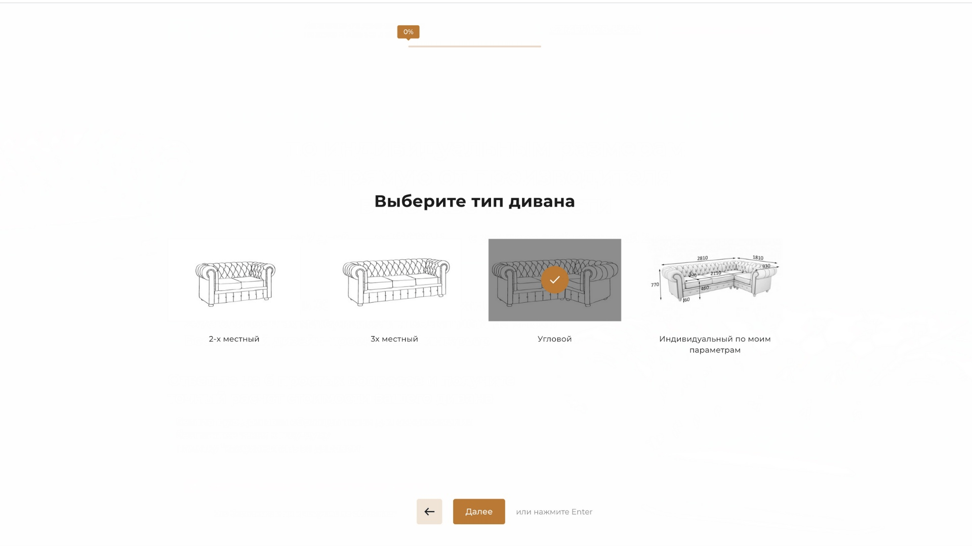 Анализ показал, что пользователи были заинтересованы в подборе конкретной модели дивана. Это открыло возможность для внедрения квиза для точного подбора продукта, который значительно улучшил пользовательский опыт и конверсию.
