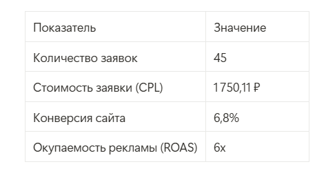 Мы начали с простой задачи: восстановить поток заявок. Но не просто вернуть 10–15 клиентов в месяц, а сделать так, чтобы их стало больше, чем до кризиса. И всё это – в несезон, когда спрос на услуги падает.