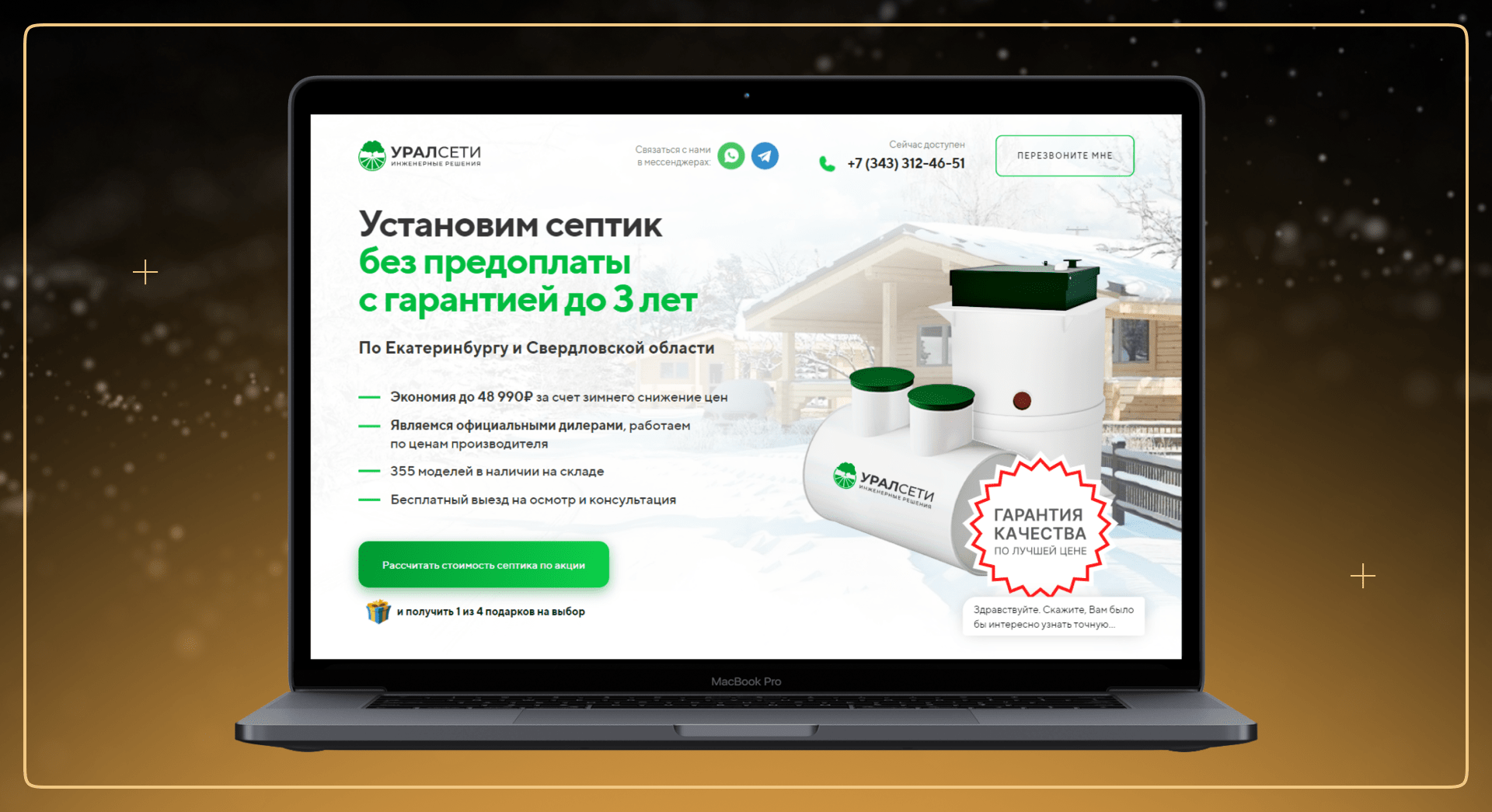- Оффер с конкретной выгодой: "Установим септик под ключ за 3 дня, гарантия 5 лет".