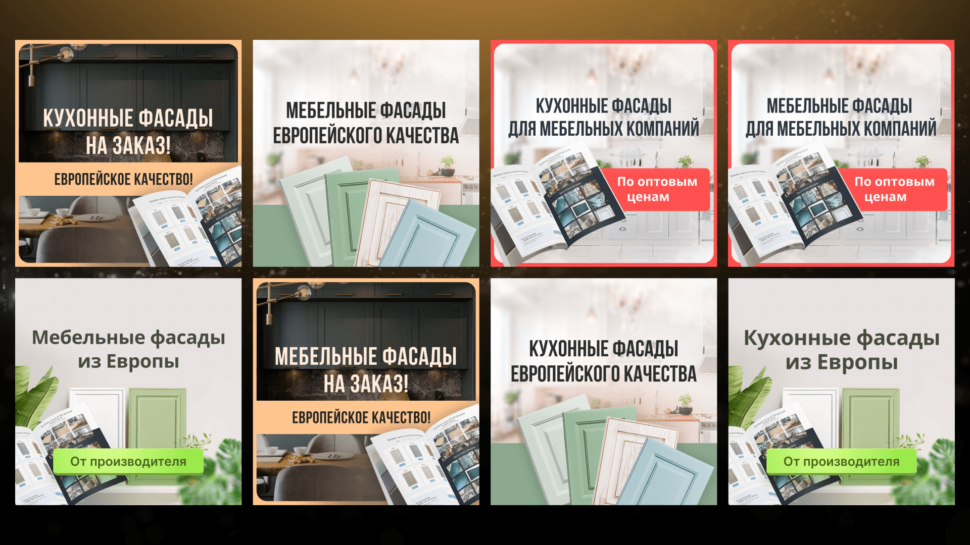 - Только B2B-ключи — «оптовые фасады», «фасады для мебельных производств», «оптовый поставщик фасадов».