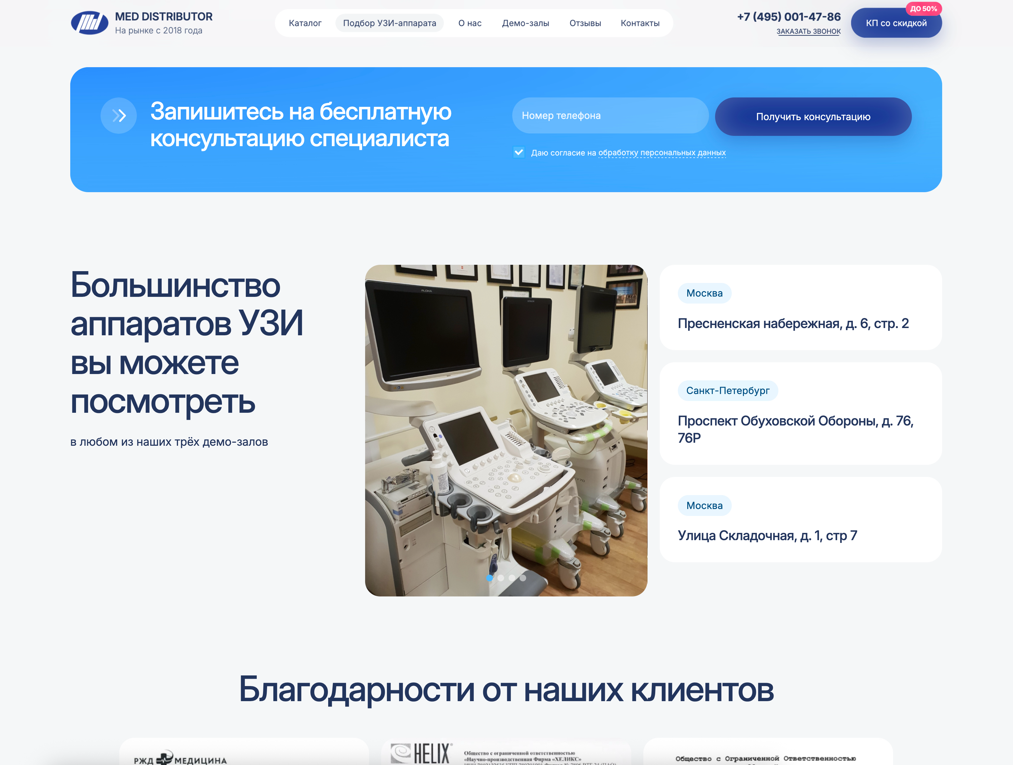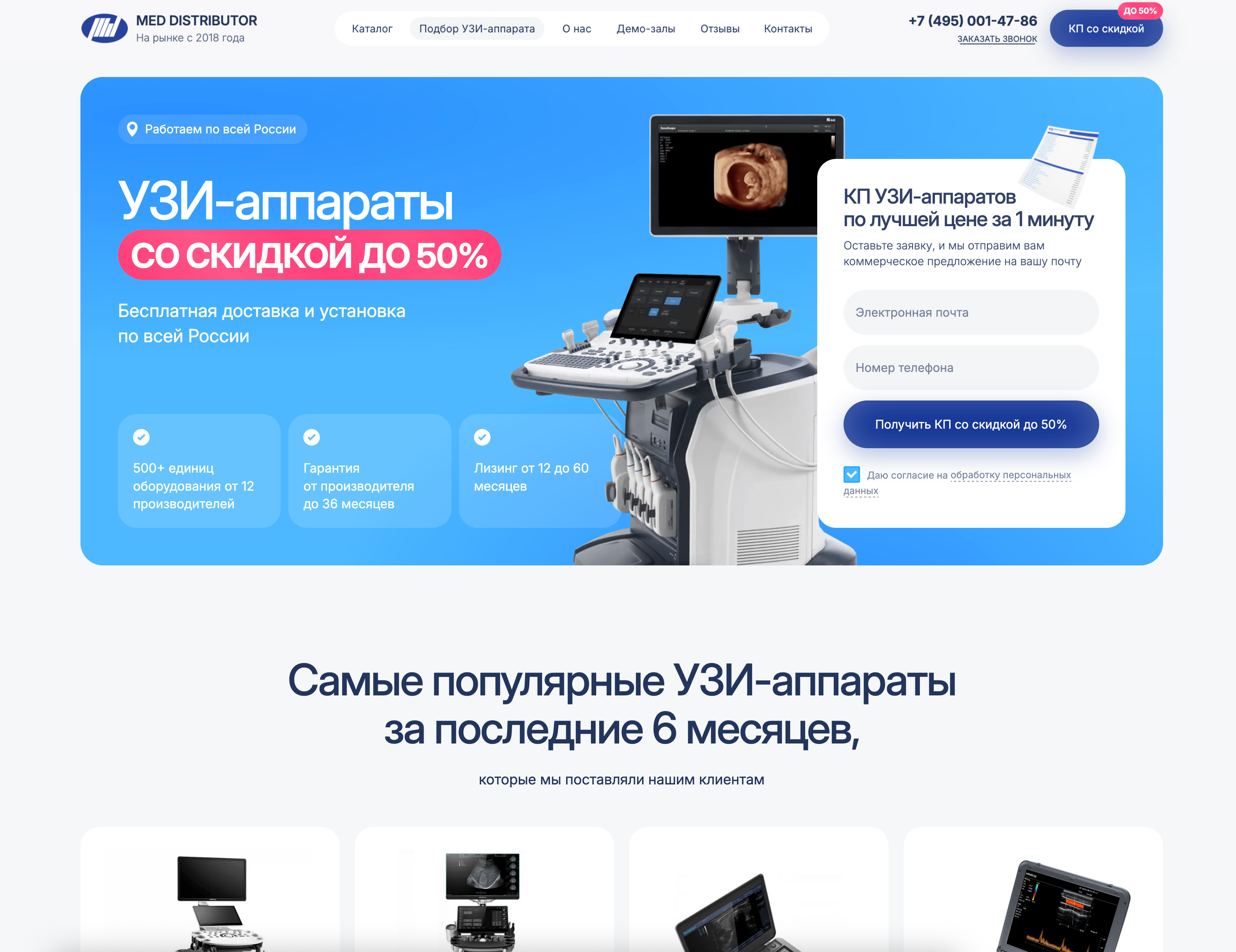 Компания-дилер УЗИ-аппаратов Дистребьютер Мед обратилась к нам в 2021 году. К этому моменту клиент уже вложил в рекламу более 500 000 ₽, но результата так и не увидел: лиды шли от частных покупателей и бюджетных учреждений. Продажи падали, руководитель был откровенно разочарован и говорил: «Маркетинг не работает, только деньги съедает».