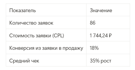- Конверсия из заявки в продажу выросла с 5% до 18%.