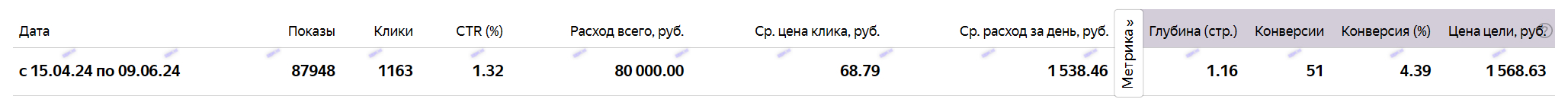 Результаты рекламной кампании (15.04.2024 – 09.06.2024)