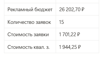 Результаты за 2 недели рекламной кампании
