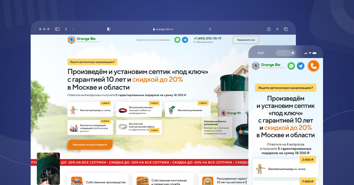 Orange Bio – производитель и поставщик автономных септиков в Москве и области. Клиент обратился с целью масштабировать поток заявок, снизить стоимость лида и увеличить продажи через контекстную рекламу.