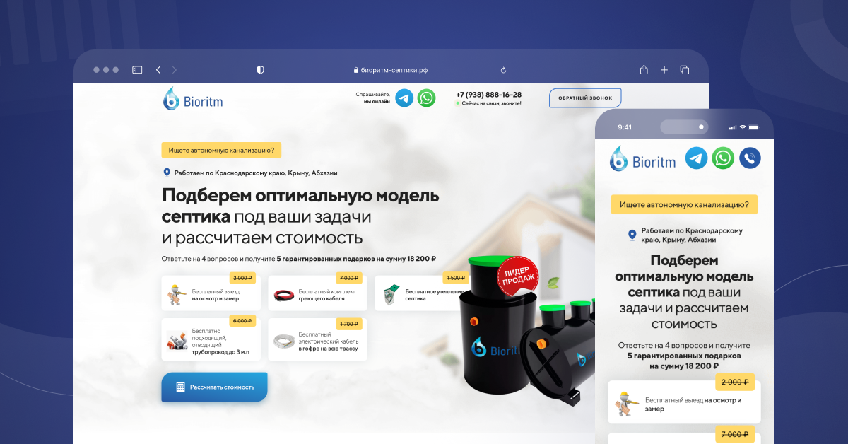 Биоритм Септики ЮФО – компания, занимающаяся доставкой и установкой автономных канализаций в Краснодарском крае и ЮФО. Клиент обратился с задачей выстроить стабильный поток заявок и увеличить продажи.