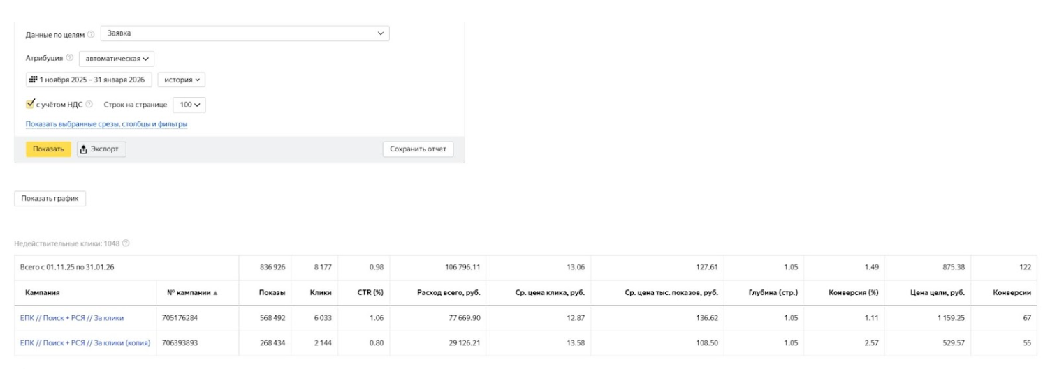 Также по двум строкам кампаний (Поиск+РСЯ):